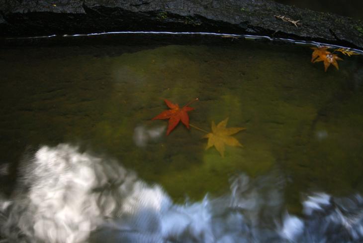 白馬渓は、上と下で高低差があるので、葉っぱが赤く色づくまで時間差があるようです。