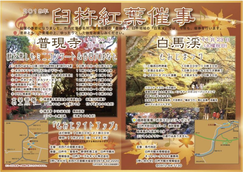 【臼杵の紅葉】白馬渓もみじまつり 11/23(土)開催!