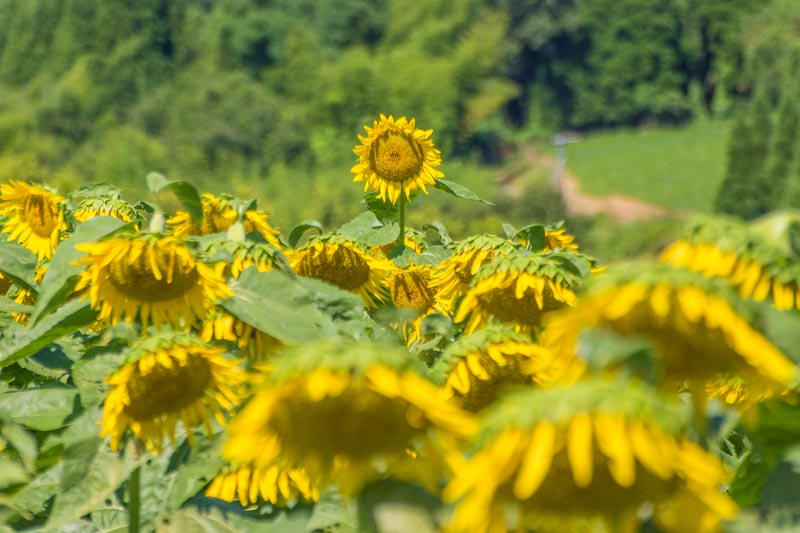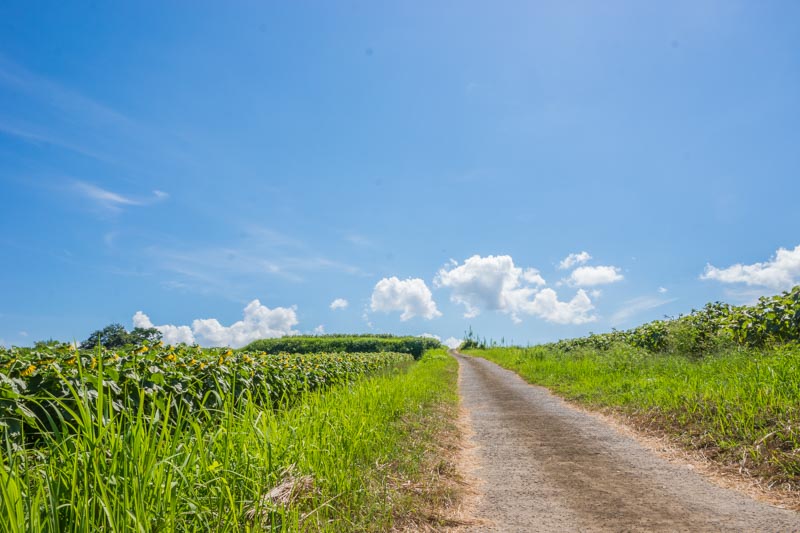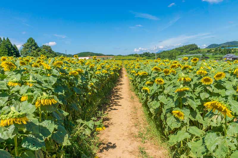 両端「ひまわり畑」で、真ん中を歩いて行く…