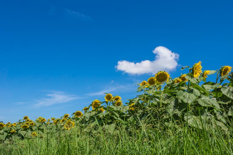 すでにひまわりがシナっとなっていましたが、雨が降ればまた変わるかも?