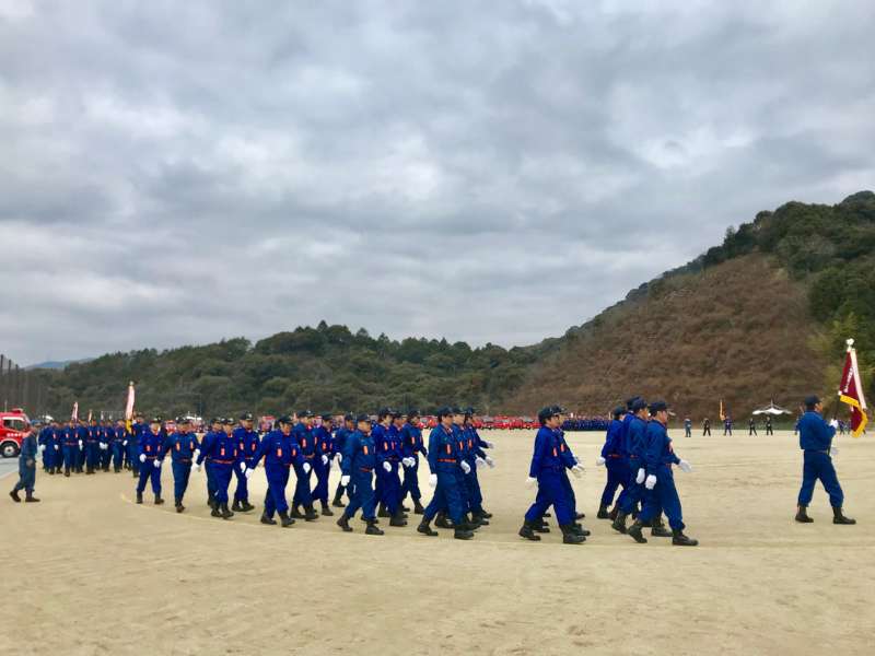 臼杵市の消防団が一同に集まったのを見るのは圧巻でした。
