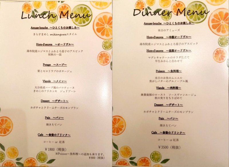 ※現在はランチ・ディナーのコースのみですが、11月からランチのコースが増えるとのことです。