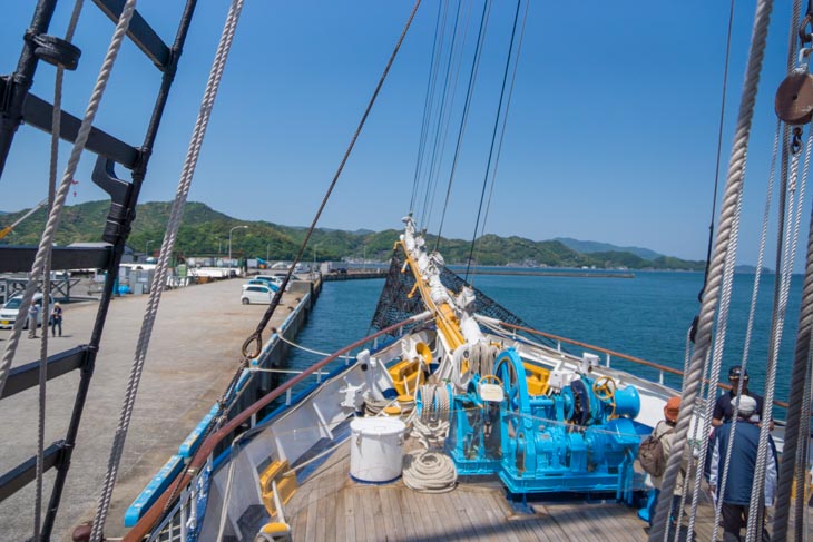 まぁ、でもそれはそれとして、やっぱり目のまえに来て実際に乗りこんでみると印象はかわります。やっぱり日ごろ見ることができない帆船。テンションが上ってしまいます。