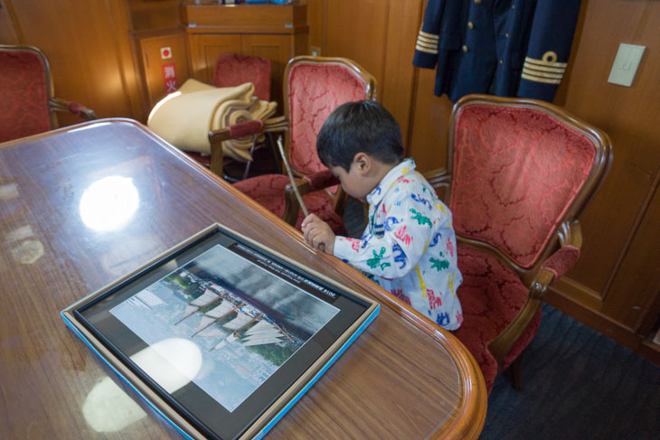 船に入ると船内の各部屋がかかれた地図のようなものを持たされて、まるで宝探しのように歩きまわっていました。