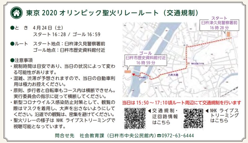 4月24日(土)大分県臼杵市にて、東京2020オリンピック聖火リレーが開催されます。