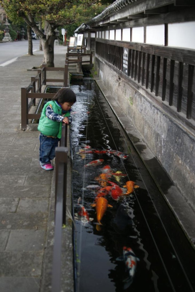 下屋敷の周りには、水路?がとおっており、たくさんの鯉をみることができます。