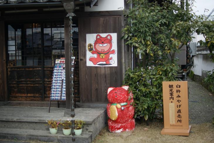 カフェからでると、お土産屋さんを通って外に出ました。ここにも赤猫がありました。