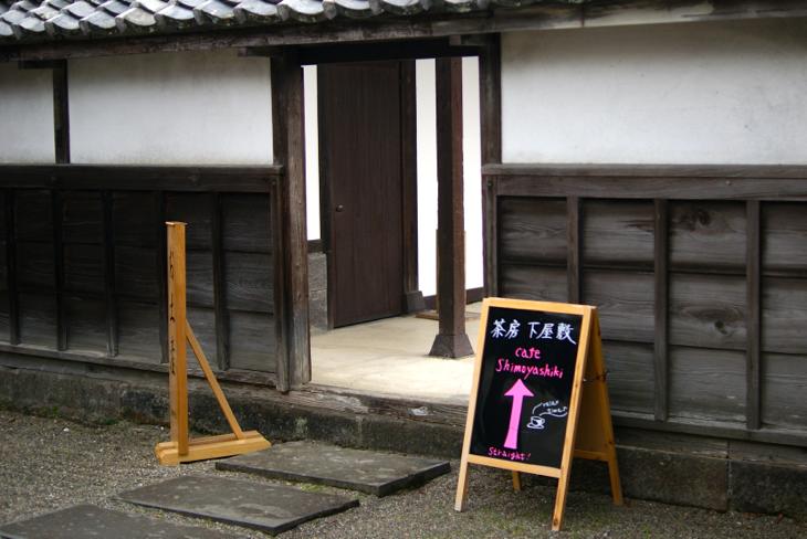 一通り見て靴を履いたあと…、下屋敷の中にこのような看板が。th_DSC03803茶房 下屋敷」というがあります。