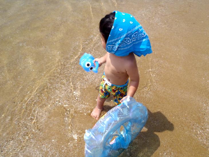 去年は、海に入るのを怖がっていたけど今年は自分から、ジャバジャバと。