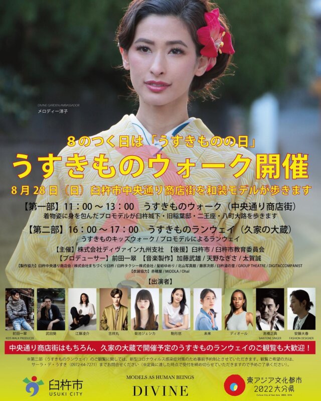 8月28日(日)臼杵市中央通り商店街を和装モデルが歩きます。