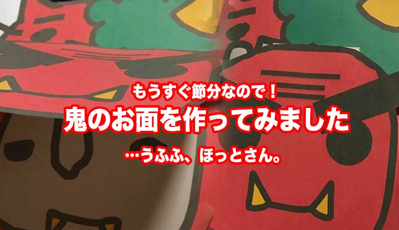 節分の日、ほっとさんの鬼のお面を配布しています。