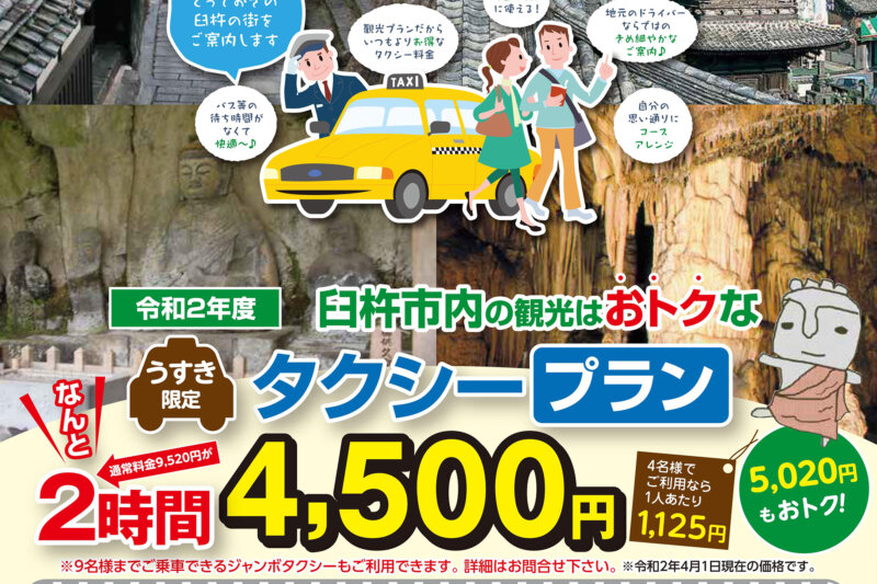 臼杵市内のタクシー会社さんが、通常よりもお得な料金で、快適な臼杵観光をご提供します。