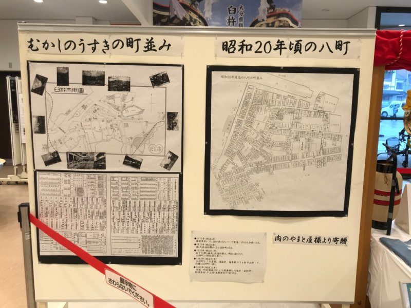 昭和20年頃の八町と昔のうすき町並みの資料も展示されていました。