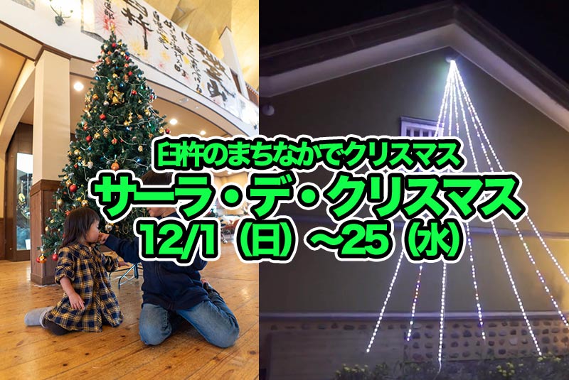 サーラ・デ・うすきでは、クリスマスイルミネーションを行います。恋人や家族と一緒におこしください。