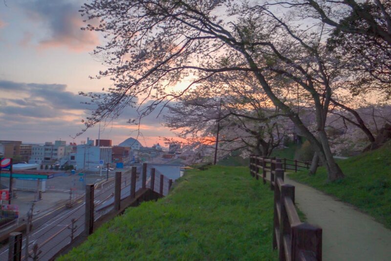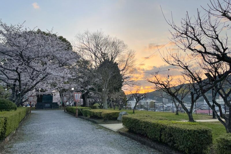 臼杵城址・朝焼けの桜