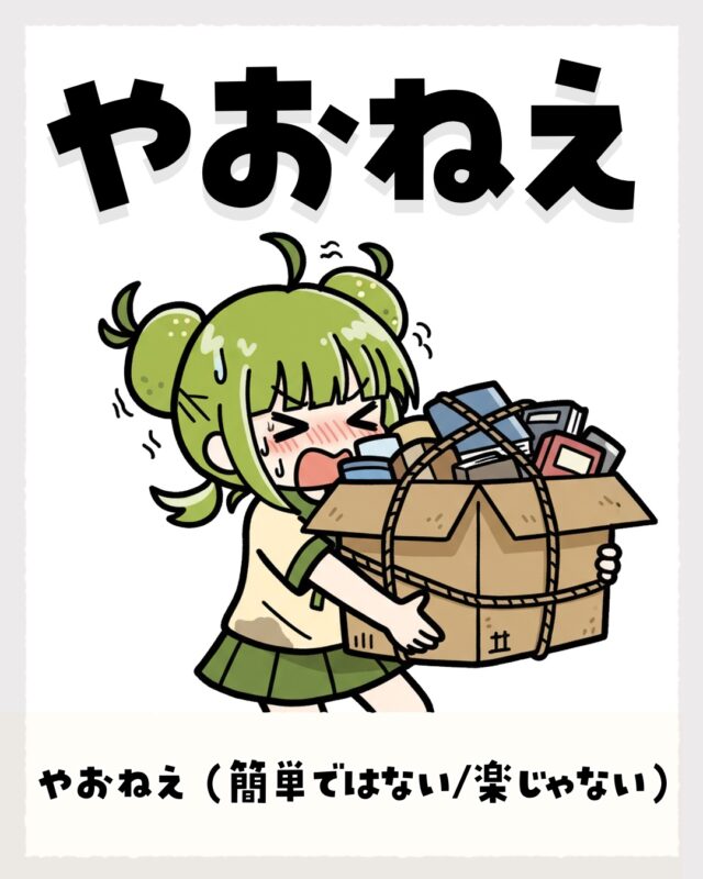 同じように「やおねえ(簡単ではない/楽じゃない)」で使われます。